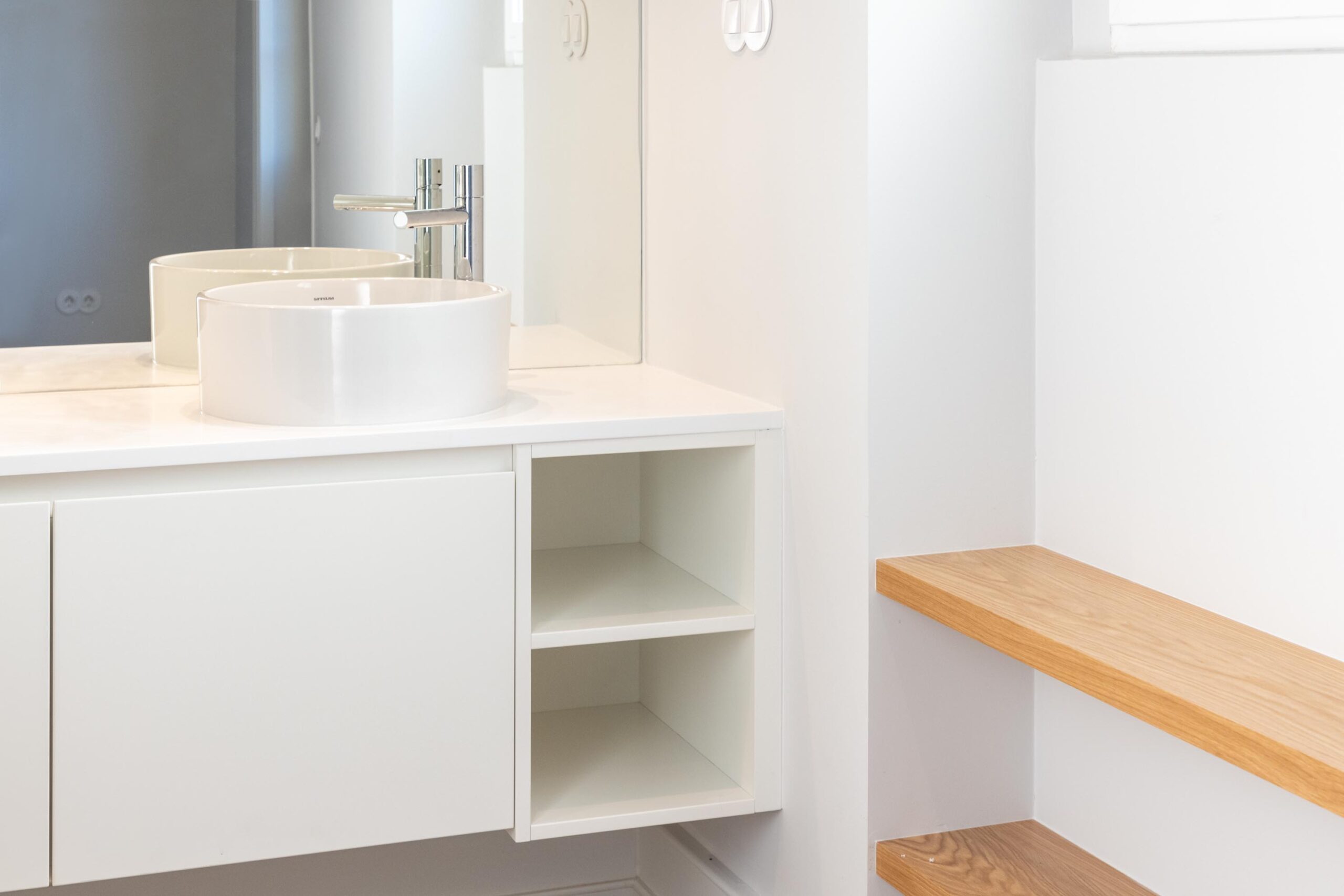 Remodeling of an apartment located at Avenida Duarte Pacheco in Lisbon. The project consisted in reorganizing the layout and modernizing the interiors. One of the client’s goals was also to increase the thermal efficiency of the house, which was achieved through new window frames and blinds. In terms of infrastructure, the entire electrical part was revised. The result is light, bright and much more functional.